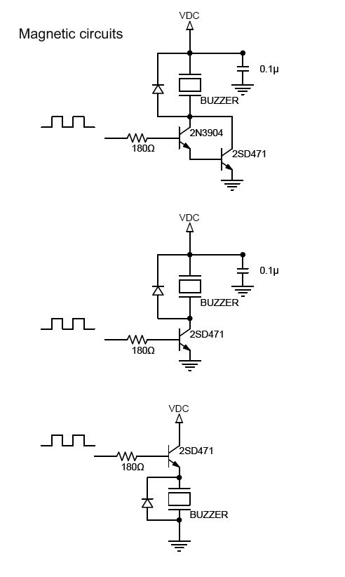 For a self- drive buzzer ( DC/ circuit- built), either pizeo or magnetic just apply the rated current and voltage.
